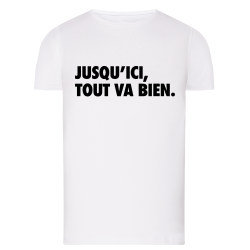 Découvrez nos produits de Jusqu\'ici tout va bien disponibles dans une variété de coloris pour satisfaire tous les goûts. Nos T-shirts arborant le Jusqu\'ici tout va bien sont proposés en 6 coloris : Blanc, Gris, Bleu, Jaune, Rose et Sable, parfaits pour toutes les occasions. Pour un look décontracté, nos T-shirts manches longues avec le Jusqu\'ici tout va bien se déclinent en Blanc, Bleu et Rose. Les T-shirts cintrés, avec le visuel Jusqu\'ici tout va bien, sont disponibles en Blanc et Rose pour un style ajusté.