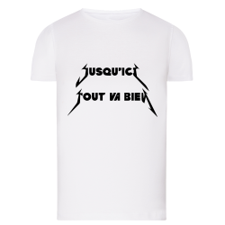 Découvrez nos produits de Jusqu\'ici Metallica 2 disponibles dans une variété de coloris pour satisfaire tous les goûts. Nos T-shirts arborant le Jusqu\'ici Metallica 2 sont proposés en 6 coloris : Blanc, Gris, Bleu, Jaune, Rose et Sable, parfaits pour toutes les occasions. Pour un look décontracté, nos T-shirts manches longues avec le Jusqu\'ici Metallica 2 se déclinent en Blanc, Bleu et Rose. Les T-shirts cintrés, avec le visuel Jusqu\'ici Metallica 2, sont disponibles en Blanc et Rose pour un style ajusté.